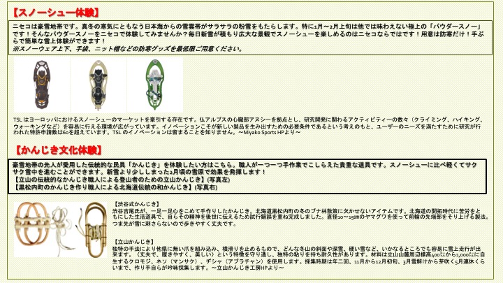 【Japanese KANJIKI walking】If you would like to experience the traditional folk tool “Kanjiki” used by our ancestors in heavy snowfall areas, click here. These precious tools are handmade one by one by craftsmen. Compared to snowshoes, kanjiki are light and easy to use. They are most effective in the snowfields around February, when the snow is a little lighter than in fresh snow!