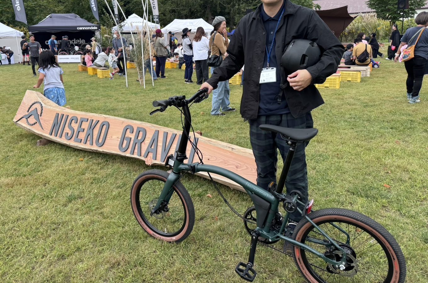 ニセコでは今までマウンテンバイクやロードバイクに関わる会社がイベント出店していましたが、「ついにブロンプトンが来るようになったか!」ということで感銘を受けていました。タイヤの大径化とボリュームアップにより十分オフロードでも活躍できることがわかりました。